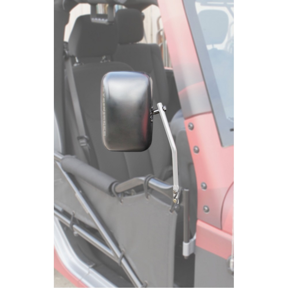 Make: Jeep Model: Wrangler Years: 2007-2018 Includes one pair of mirrors and mounting arms These simple yet effective mirrors will bolt on directly to your Steinjager Tube Doors. The mounting arms are manufactured completely in the USA out of heavy duty 1/2 inch steel bar to hold up to the heaviest of usage.