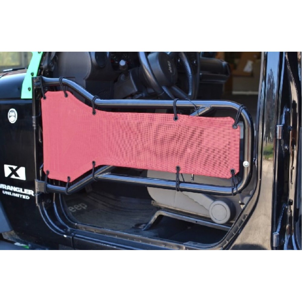 Made in the USA Make: Jeep Model: Wrangler Years: 2007-2018 Color: Mauve Mesh These covers are a great accessory to your existing Steinjager Tube Doors. This kit will cover one pair of front JK Tube Doors using bungee balls to secure them in place. Bungee balls are included in the kit.